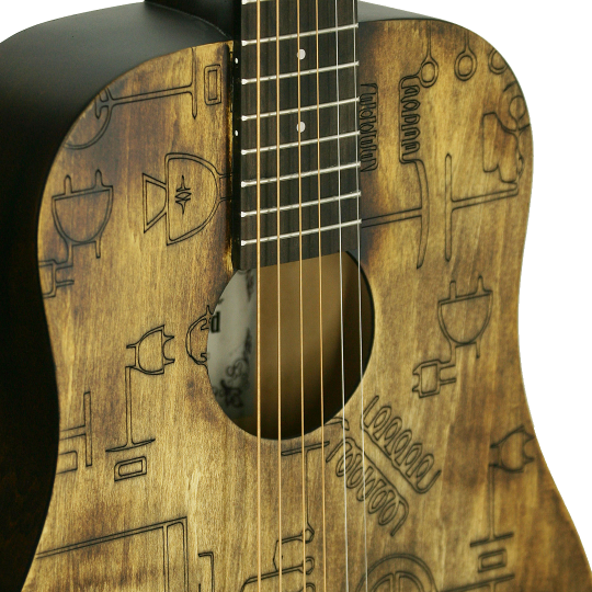 Soldin公司特別從國外採購雷射雕刻機,部分型號使用雷射雕刻機針對頭標、口輪、面板等部位進行雷射雕刻,透過設計師的巧思,將設計元素融入到面板花紋中,讓整把作品呈現出不同的創意風格.