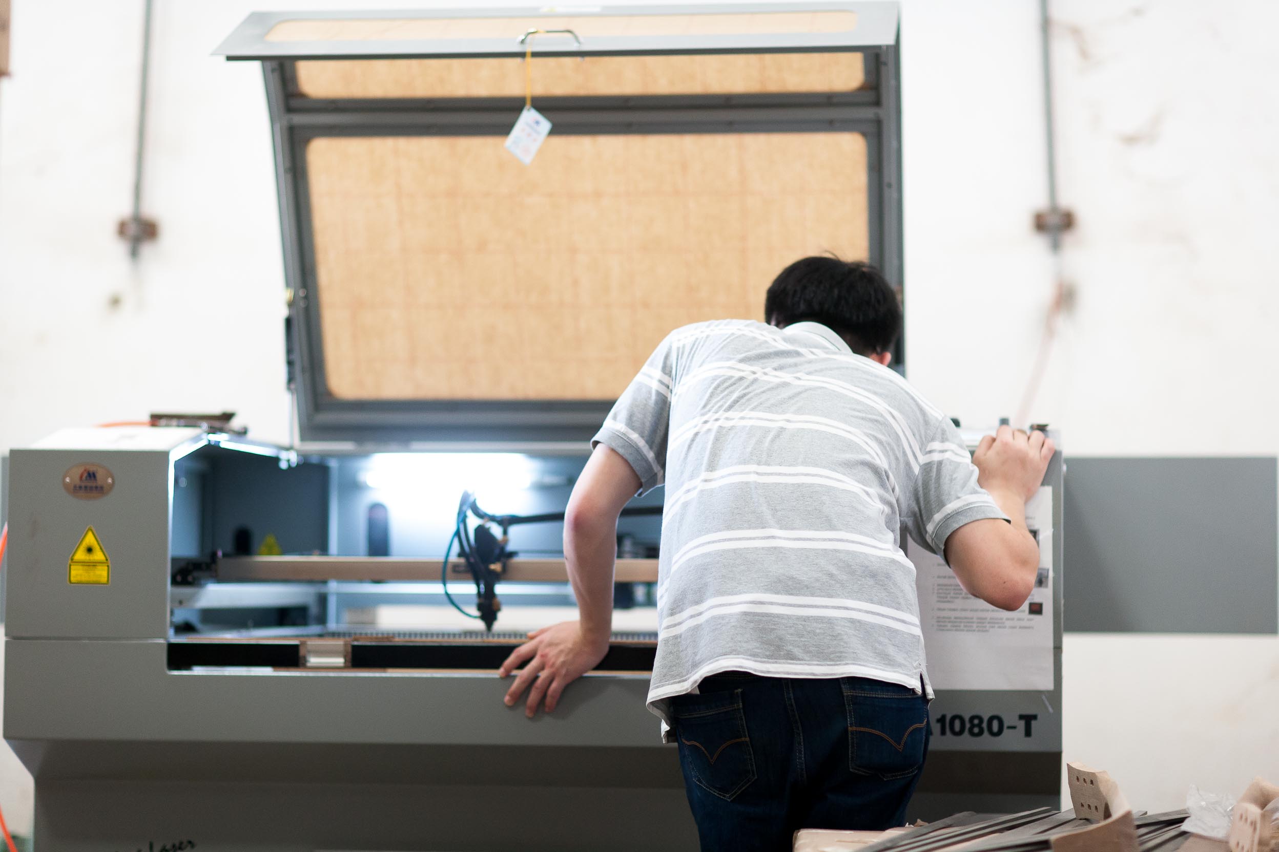Soldin 產品經理正在確認雷射雕刻機雕刻過程