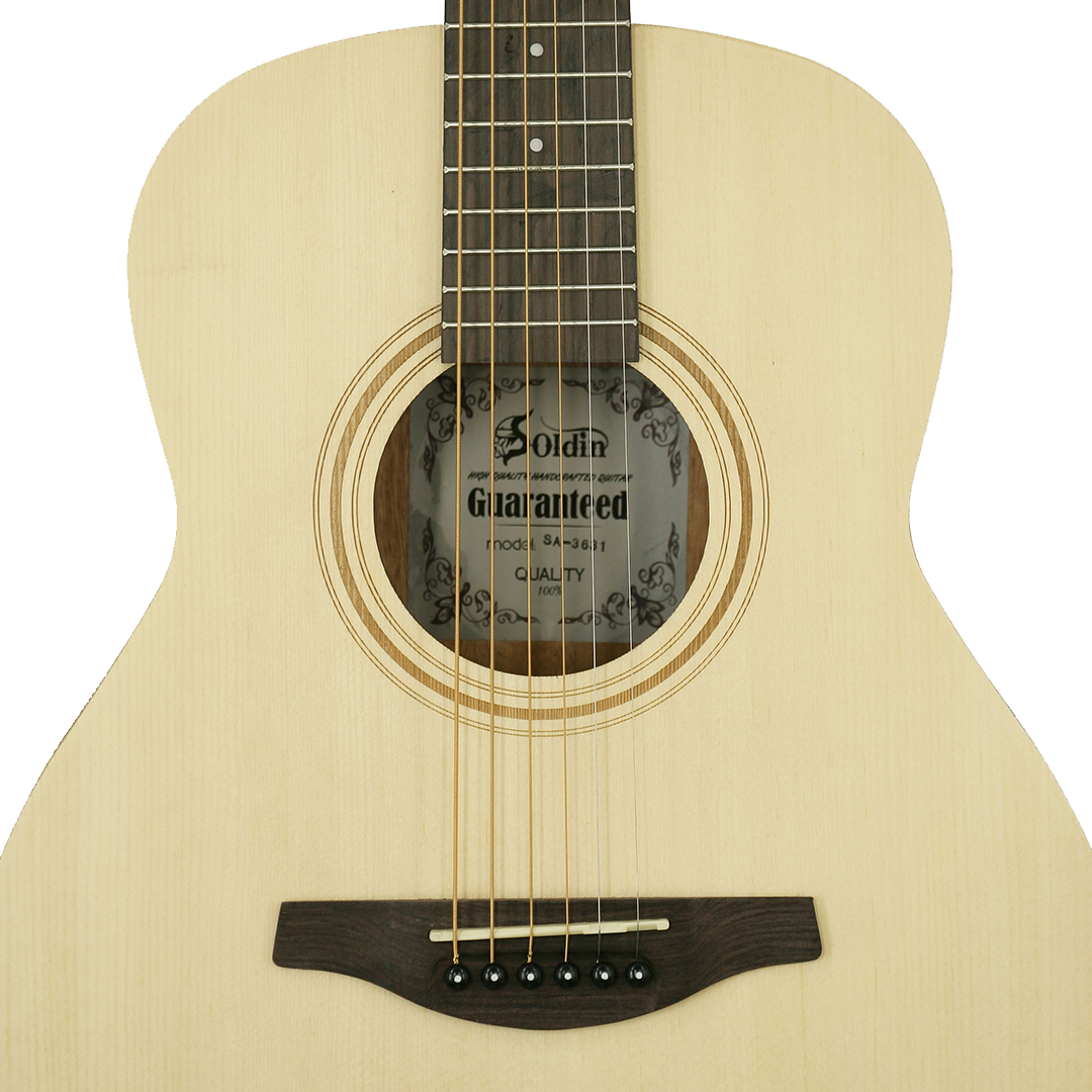 雲杉一般生長於高緯度、寒冷的地方,Soldin所採用之雲杉,重量輕,質地軟,紋理直,顏色淡黃,不易變暗。特色為明亮、敏銳、成熟的音色,中頻的部份也比一般常見的西特加雲杉豐富。雲杉的開聲時間較長,隨著彈奏者的使用時間越長,吉他的音色可以有很好的表現。