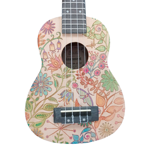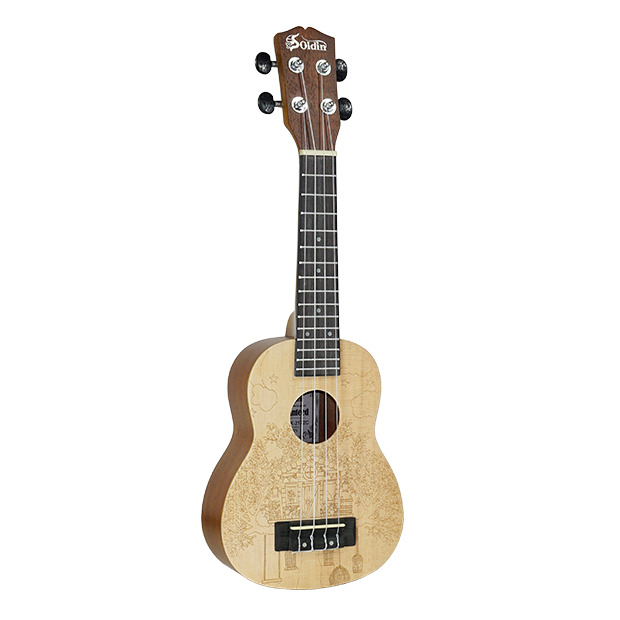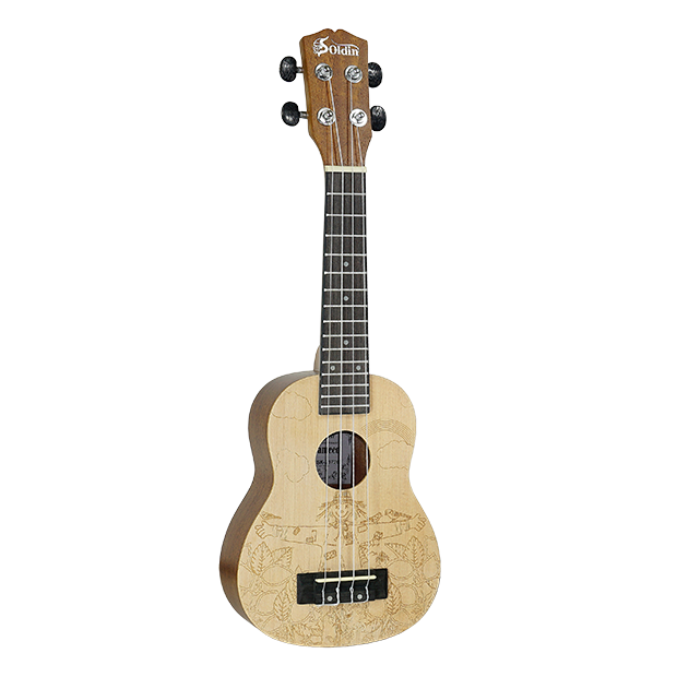 Soldin公司特別從國外採購雷射雕刻機,部分型號使用雷射雕刻機針對頭標、口輪等部位進行雷射雕刻,透過設計師的巧思,將設計元素融入到音孔裝飾的花紋中,讓整把作品呈現出不同的東南亞熱帶風格.