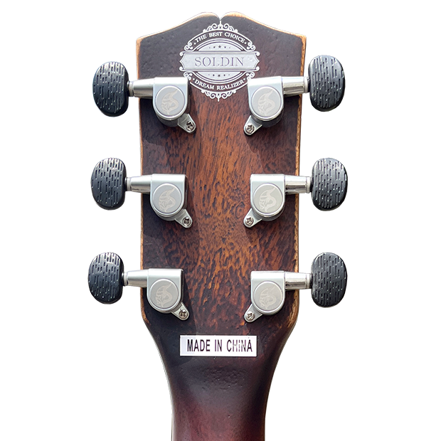 Soldin公司特別從國外採購雷射雕刻機,部分型號使用雷射雕刻機針對頭標、口輪等部位進行雷射雕刻,透過設計師的巧思,將設計元素融入到音孔裝飾的花紋中,讓整把作品呈現出不同的東南亞熱帶風格.
