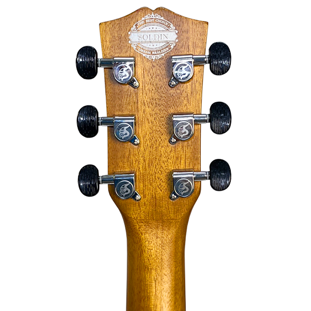 Soldin公司特別從國外採購雷射雕刻機,部分型號使用雷射雕刻機針對頭標、口輪等部位進行雷射雕刻,透過設計師的巧思,將設計元素融入到音孔裝飾的花紋中,讓整把作品呈現出不同的東南亞熱帶風格.