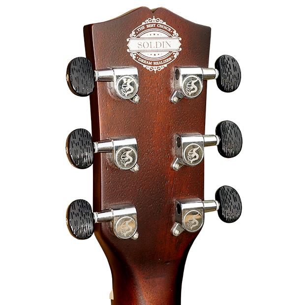 雲杉一般生長於高緯度、寒冷的地方,Soldin所採用之雲杉,重量輕,質地軟,紋理直,顏色淡黃,不易變暗。特色為明亮、敏銳、成熟的音色,中頻的部份也比一般常見的西特加雲杉豐富。雲杉的開聲時間較長,隨著彈奏者的使用時間越長,吉他的音色可以有很好的表現。