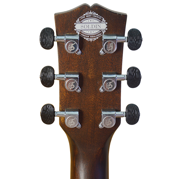 雲杉一般生長於高緯度、寒冷的地方,Soldin所採用之雲杉,重量輕,質地軟,紋理直,顏色淡黃,不易變暗。特色為明亮、敏銳、成熟的音色,中頻的部份也比一般常見的西特加雲杉豐富。雲杉的開聲時間較長,隨著彈奏者的使用時間越長,吉他的音色可以有很好的表現。