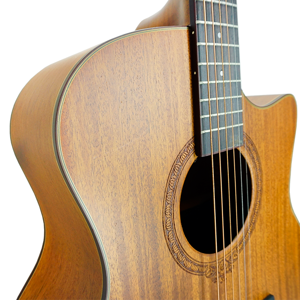 桃花芯木堅硬輕巧,耐磨損,不易變形.特色為音色富含低頻,但缺乏華麗高音,多製作於面板(Top)、背板(Back)、側板(Side)、琴頸(Neck)。
